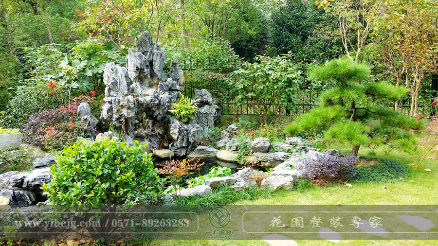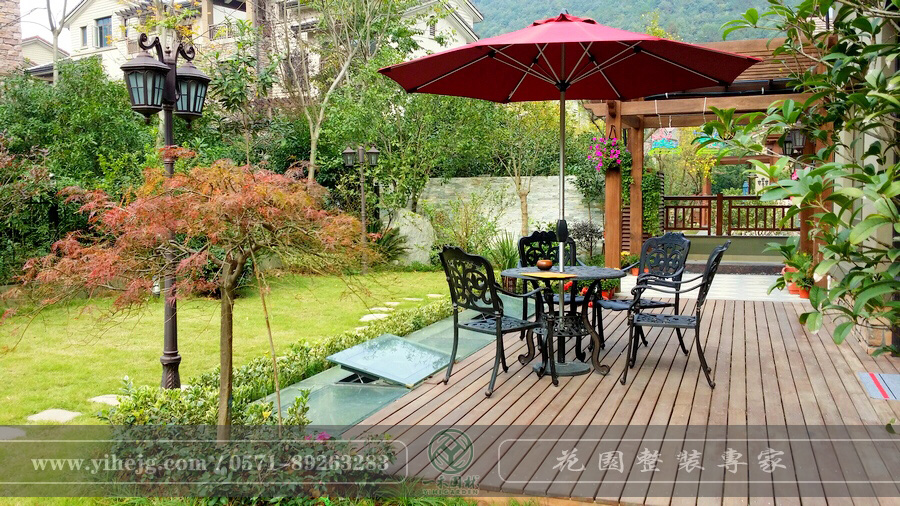 清源上林湖別墅花園景觀設計|木平臺景觀設計|庭院花園假山水池施工