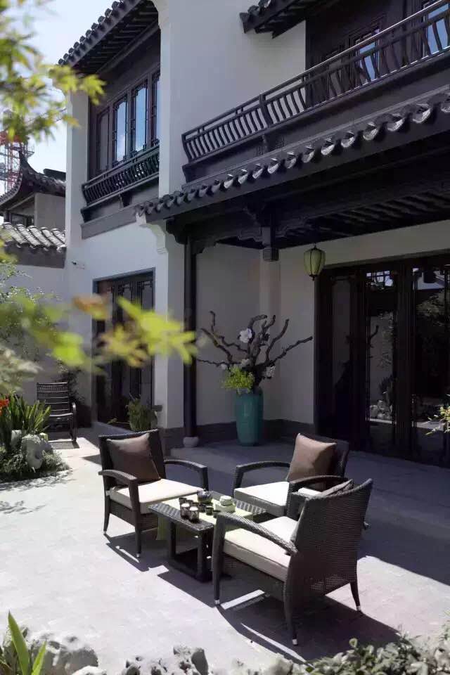 意象中式:一些風(fēng)格清新的項(xiàng)目也受到客戶的歡迎,如杭州桂語里。白描手法寫意江南民居風(fēng)格,木窗灰磚呼應(yīng)自在墅居。
