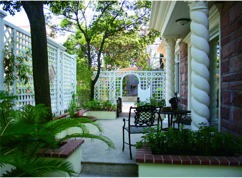 中式花園分有三個(gè)支流:北方的四合院庭園、江南的寫意山水、嶺南園林,以江南園林為最。中式花園有著濃郁的古典水墨山水畫意境。庭園是由建筑、山水、花木共同組成的藝術(shù)品,建筑以木質(zhì)的亭臺(tái)、臺(tái)、廊、榭為主,月洞門、花格窗式的黛瓦粉墻起到或阻隔或引導(dǎo)或分割視線和游徑和作用。庭園植物有著明確的寓意和嚴(yán)格的位置。如屋后栽竹,廳前植桂,花壇種牡丹、芍藥,階前梧桐,轉(zhuǎn)角芭蕉,坡地白皮松,水池栽荷花,點(diǎn)景用竹子、石筍,小品用石桌椅、孤賞石等等。